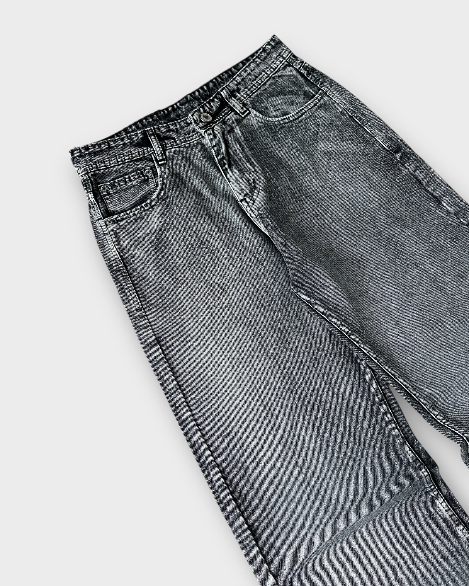 Charcoal Grey Vintage Wash Baggy Wide Leg Jeans
