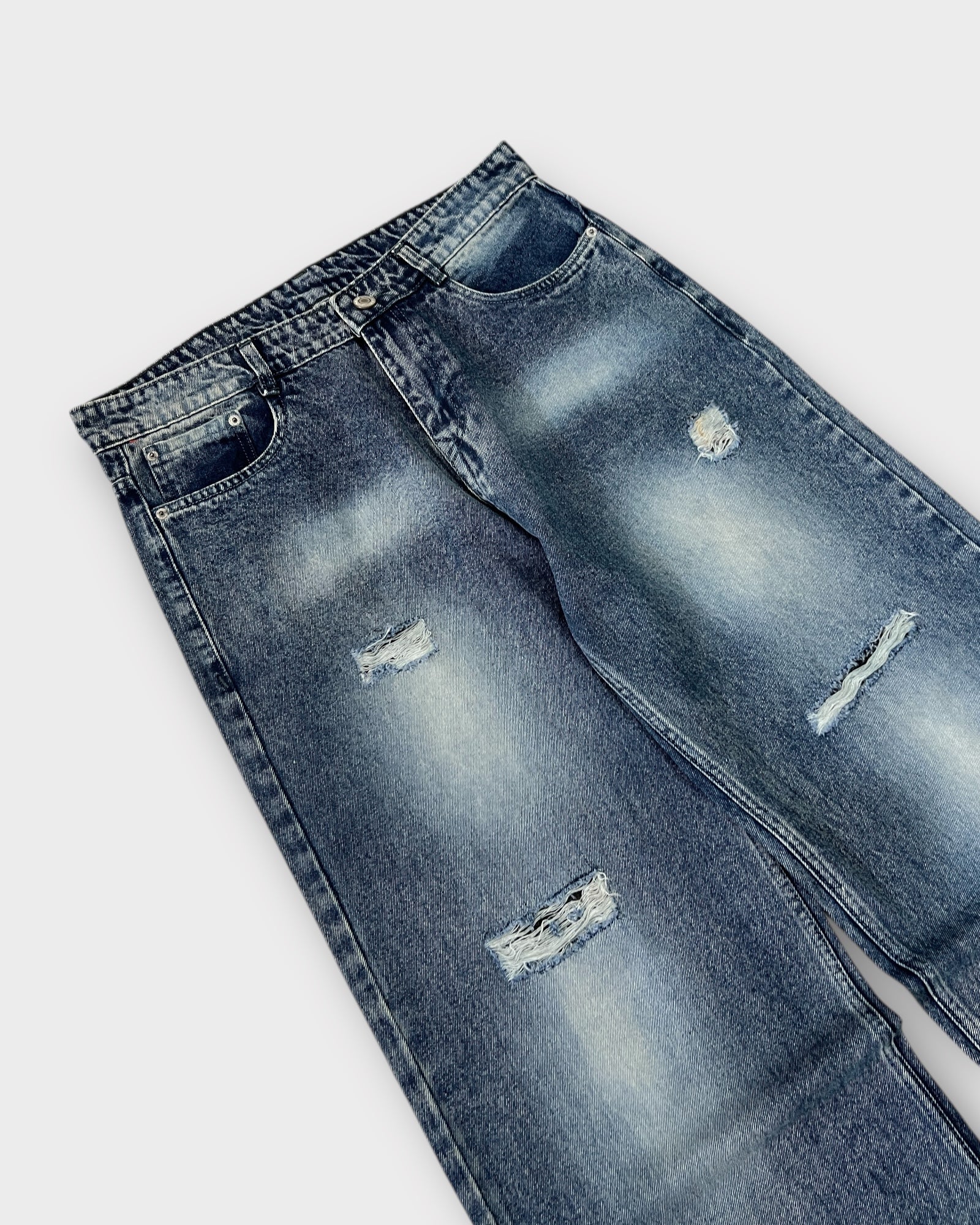 Distressed Indigo Wide Leg Baggy Jeans