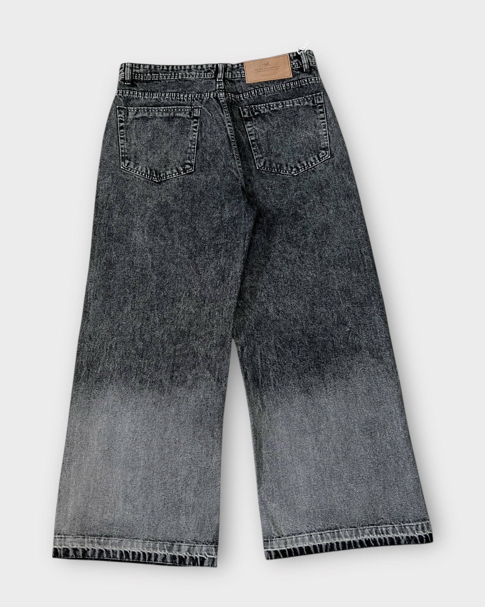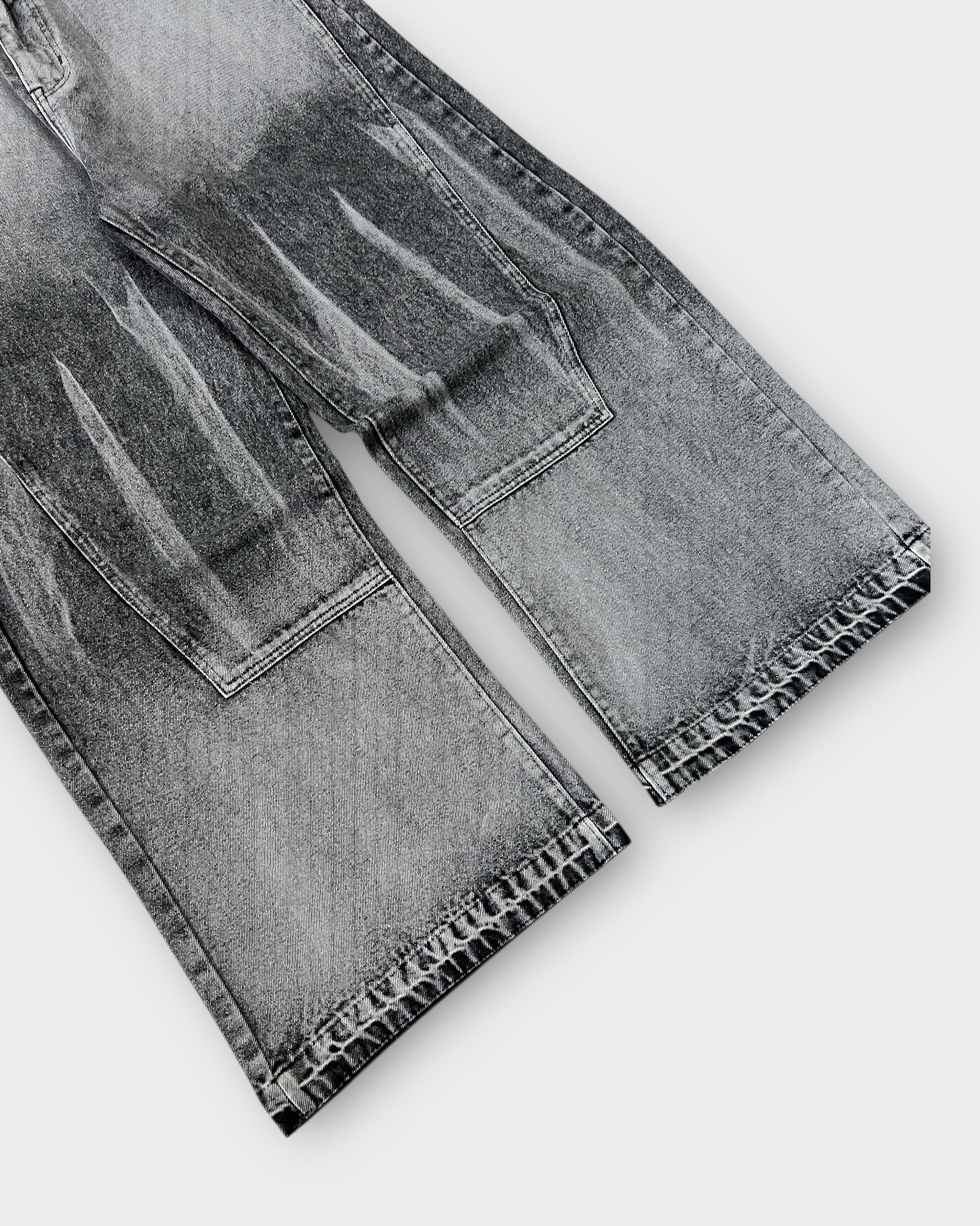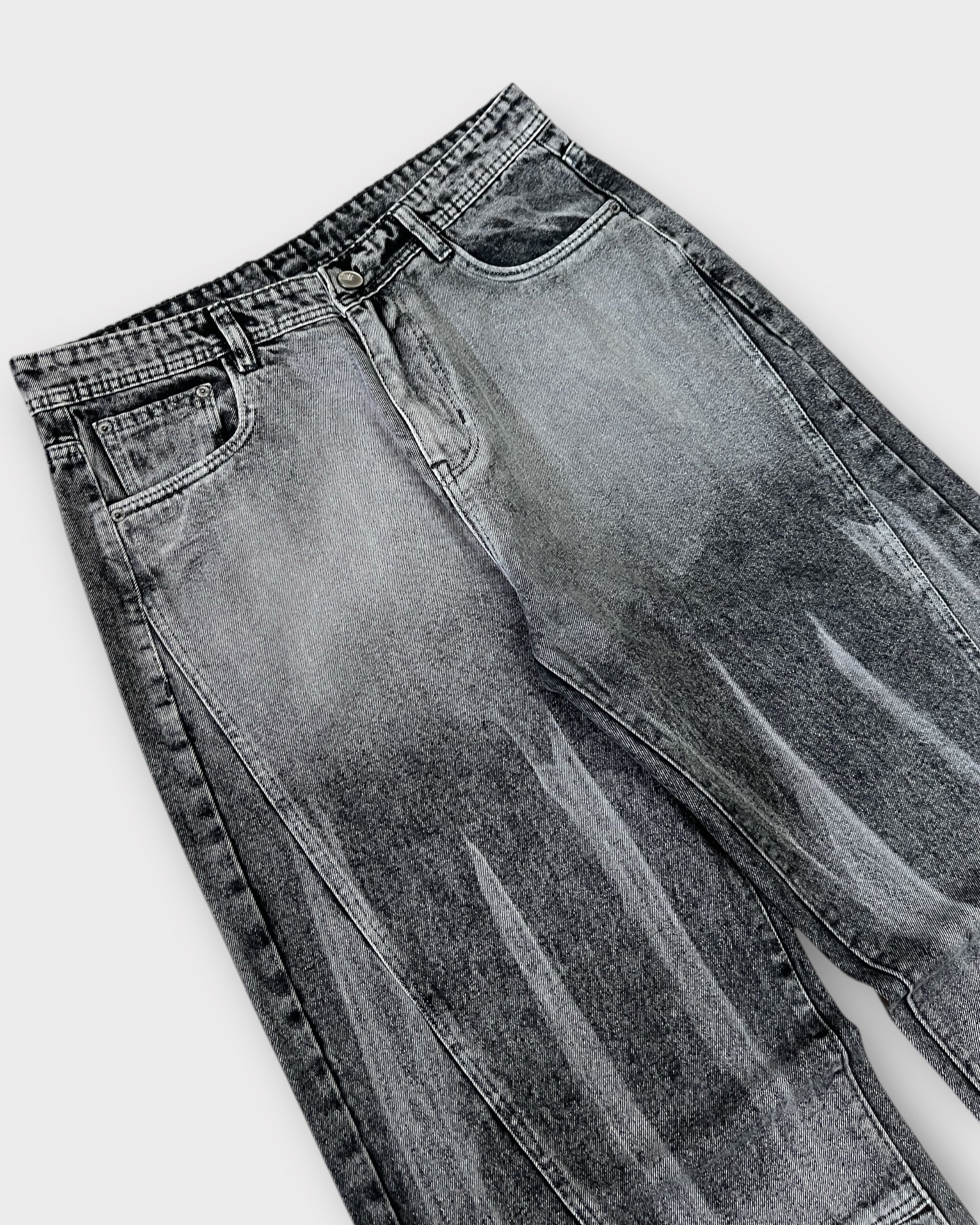 Grey Stonewashed Panel Wide Leg Baggy Jeans
