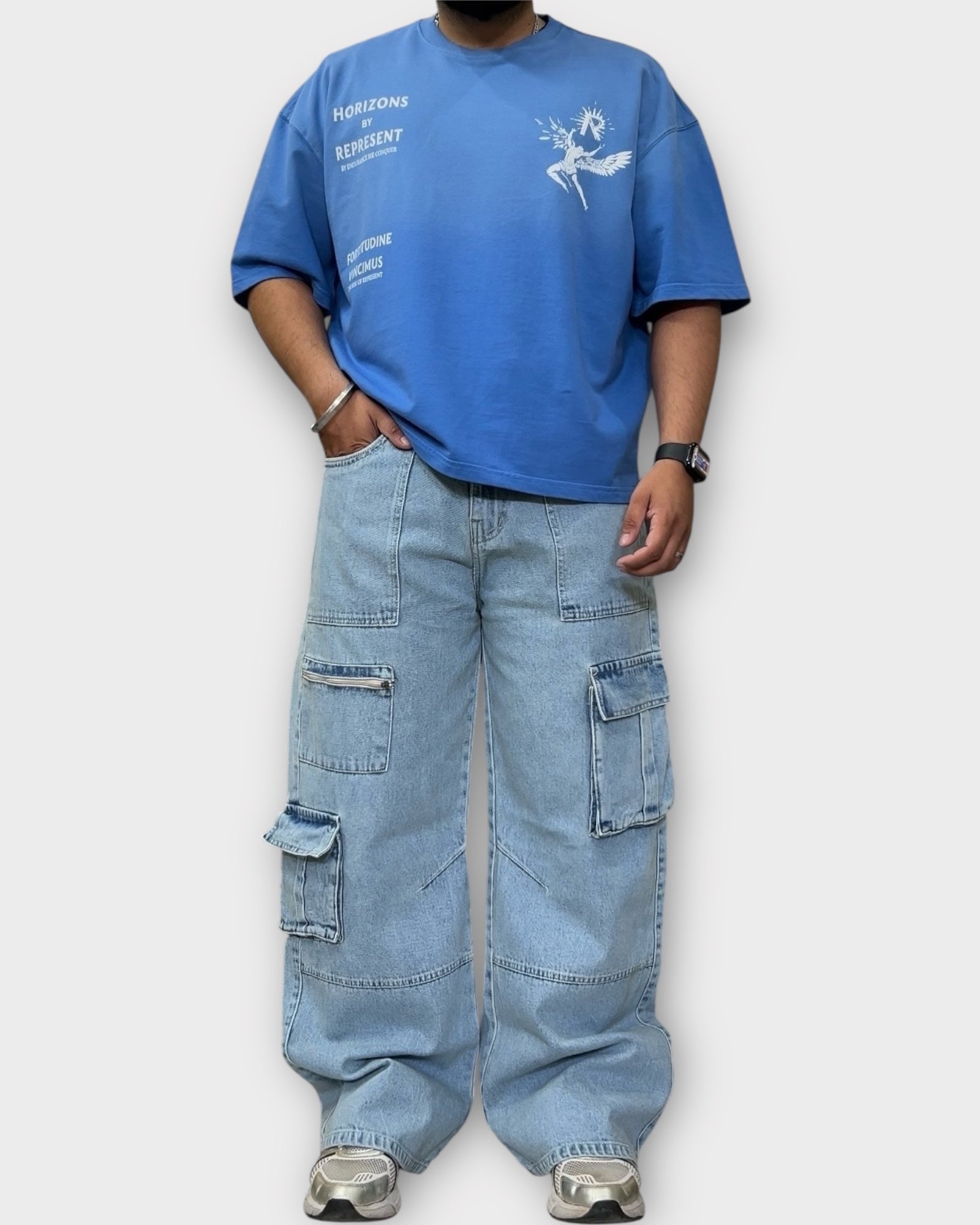 Light Wash Utility Cargo Denim Baggy Wide Fit