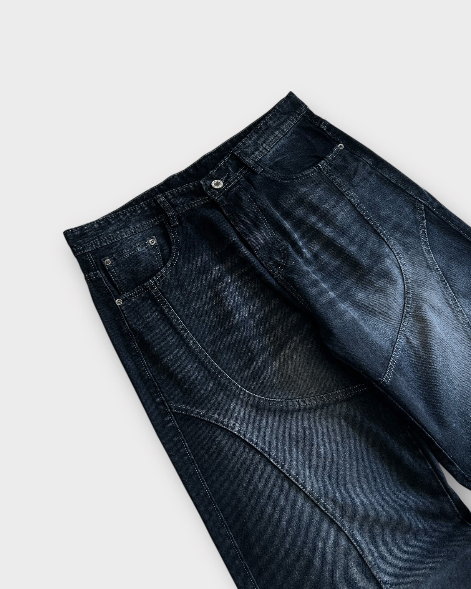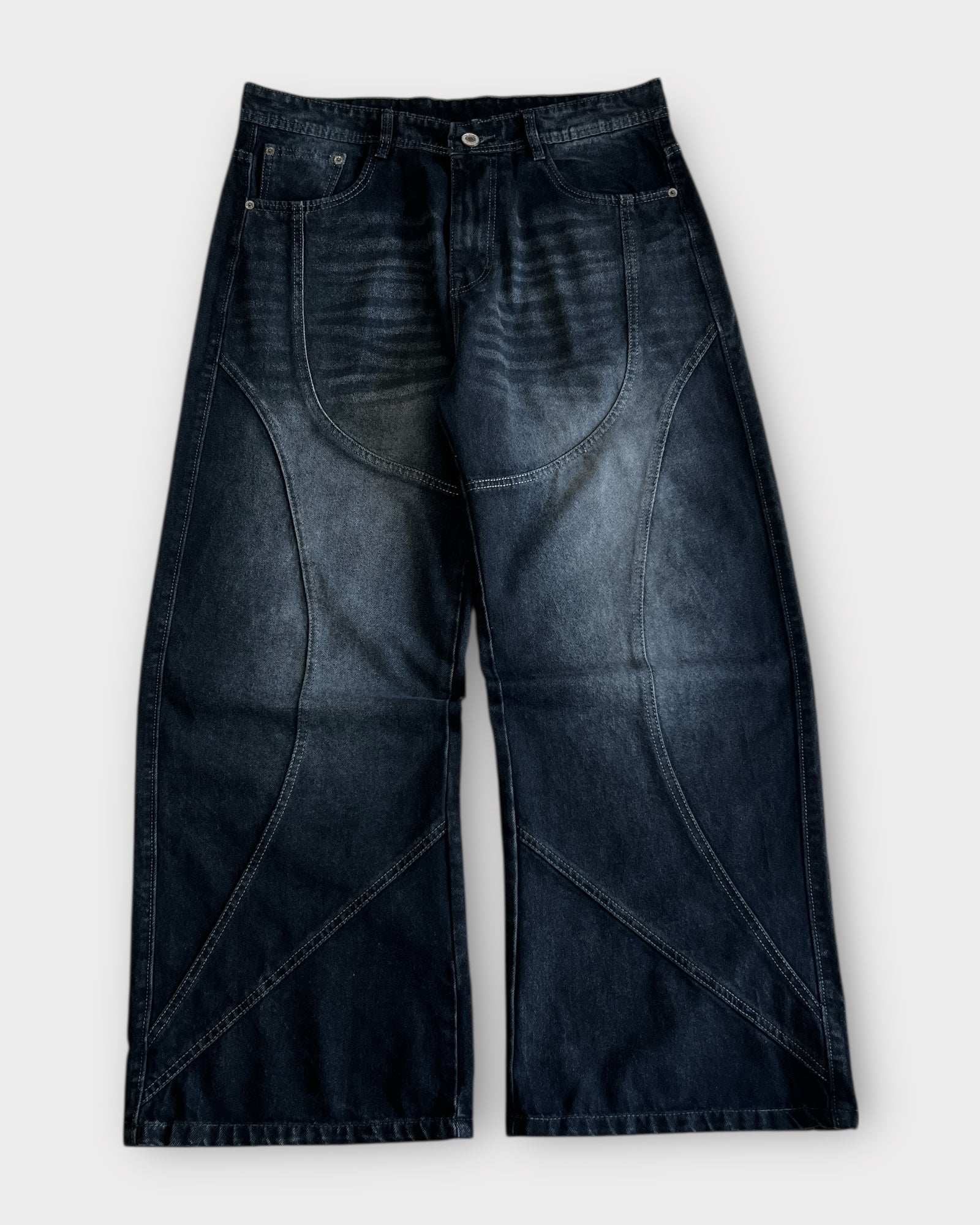 Shadow Panelled Dark Wash Baggy Wide Leg Jeans
